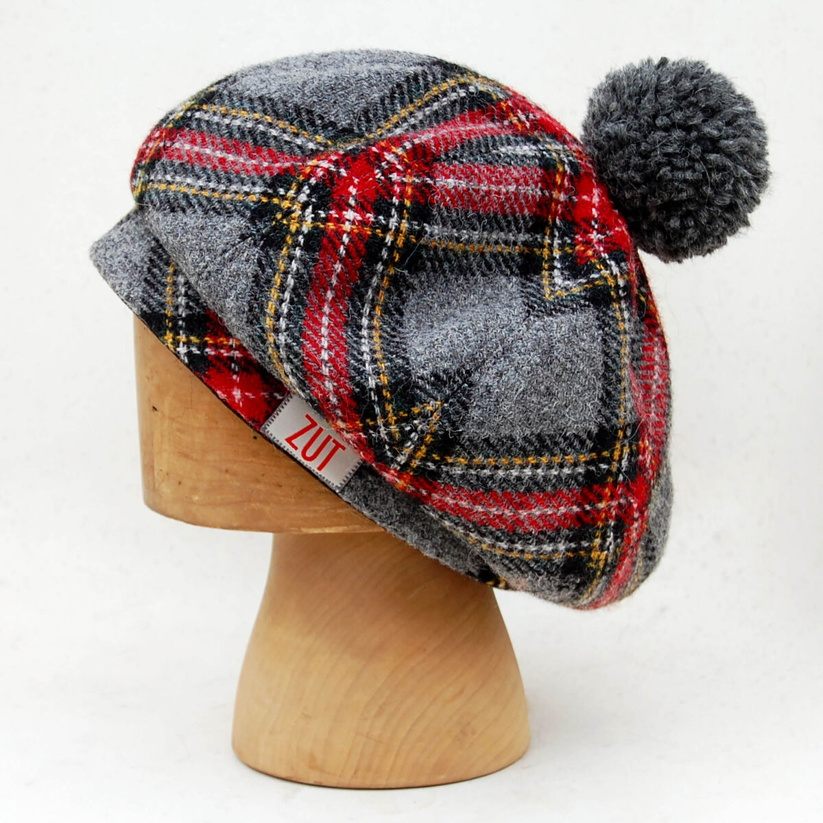 Oversize red tartan Harris Tweed beret, ZUTtam